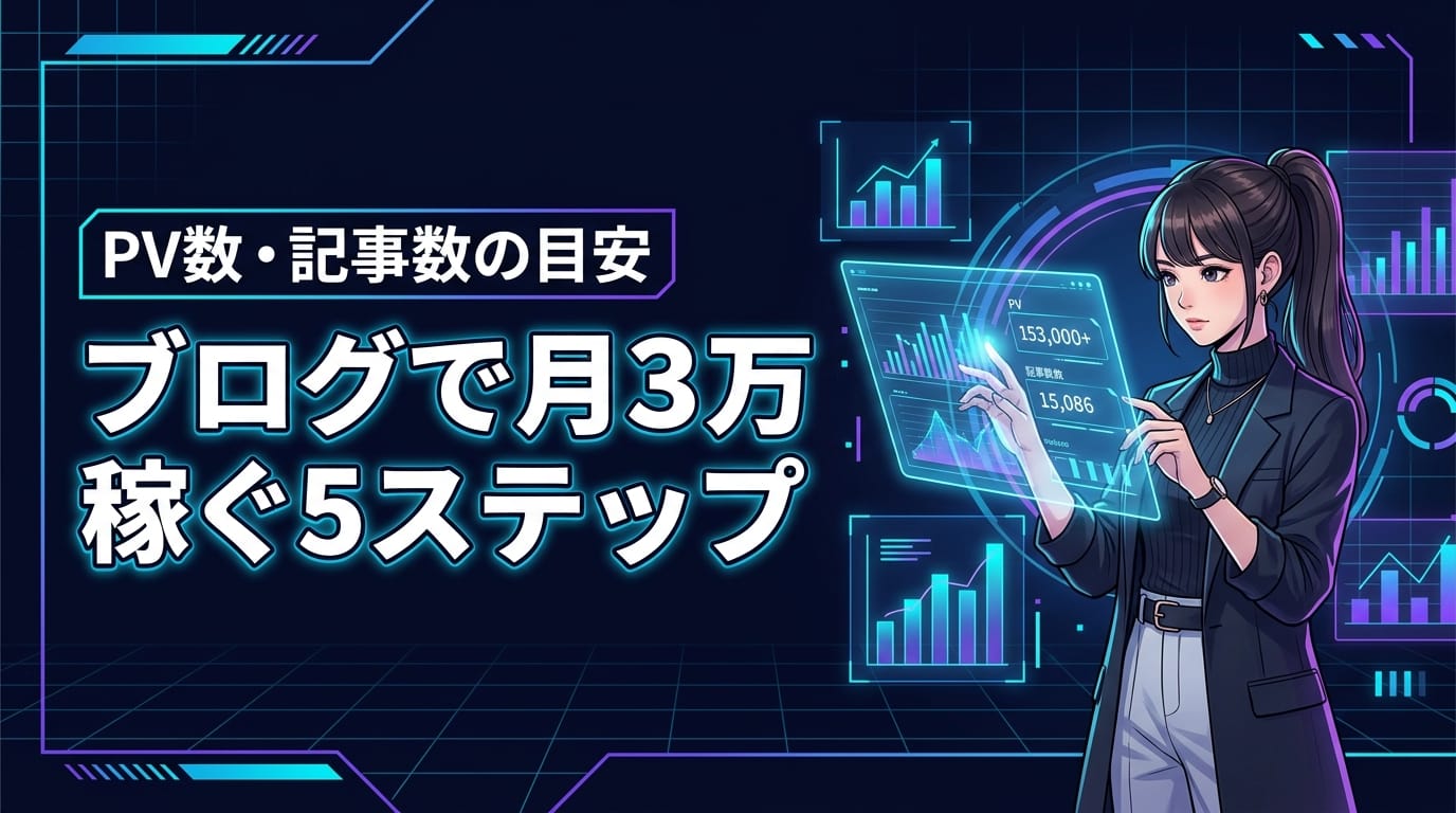 ブログで月3万稼ぐ5ステップ!必要なPV数や記事数の目安を具体的に公開